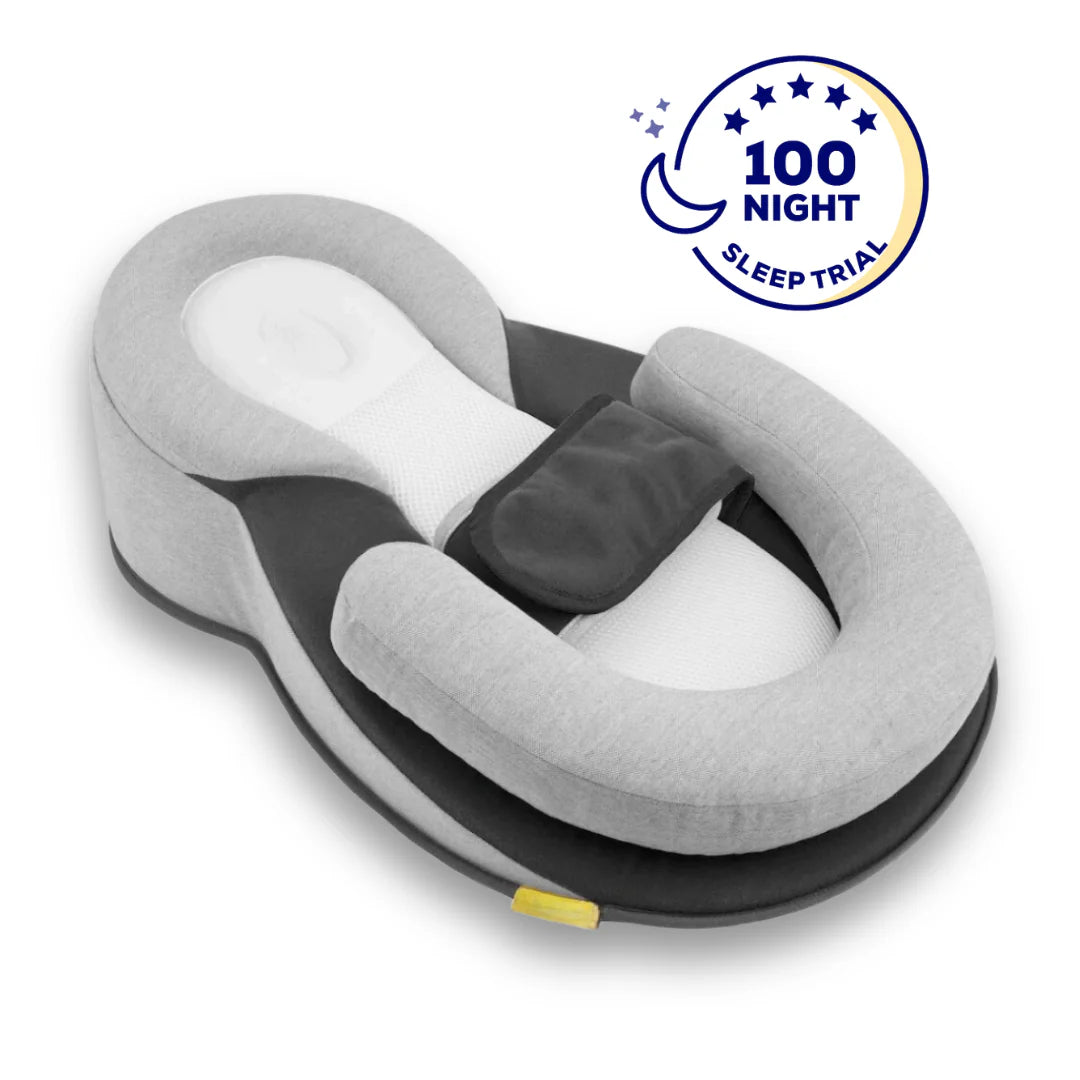 Designed with raised side barriers and an adjustable safety strap to keep your baby safely on their back all night, reducing rollover risks.